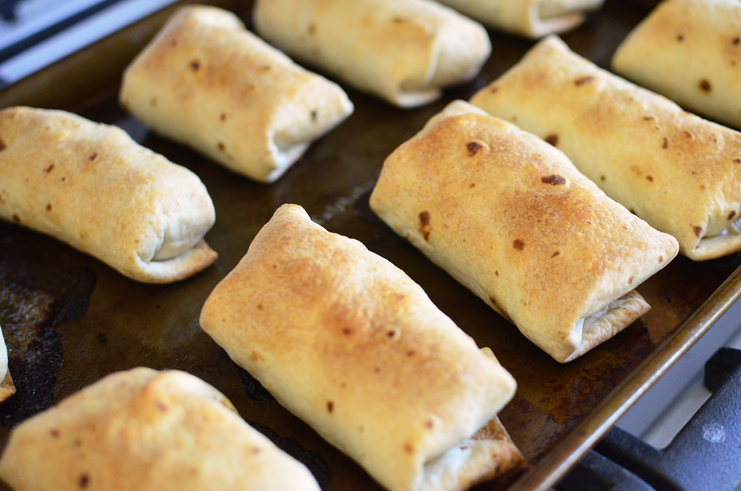 Brush each with the melted butter and bake at 400 degrees for 25 minutes, or until crispy and golden-brown (you can turn on your broiler to finish the browning toward the end, if desired).