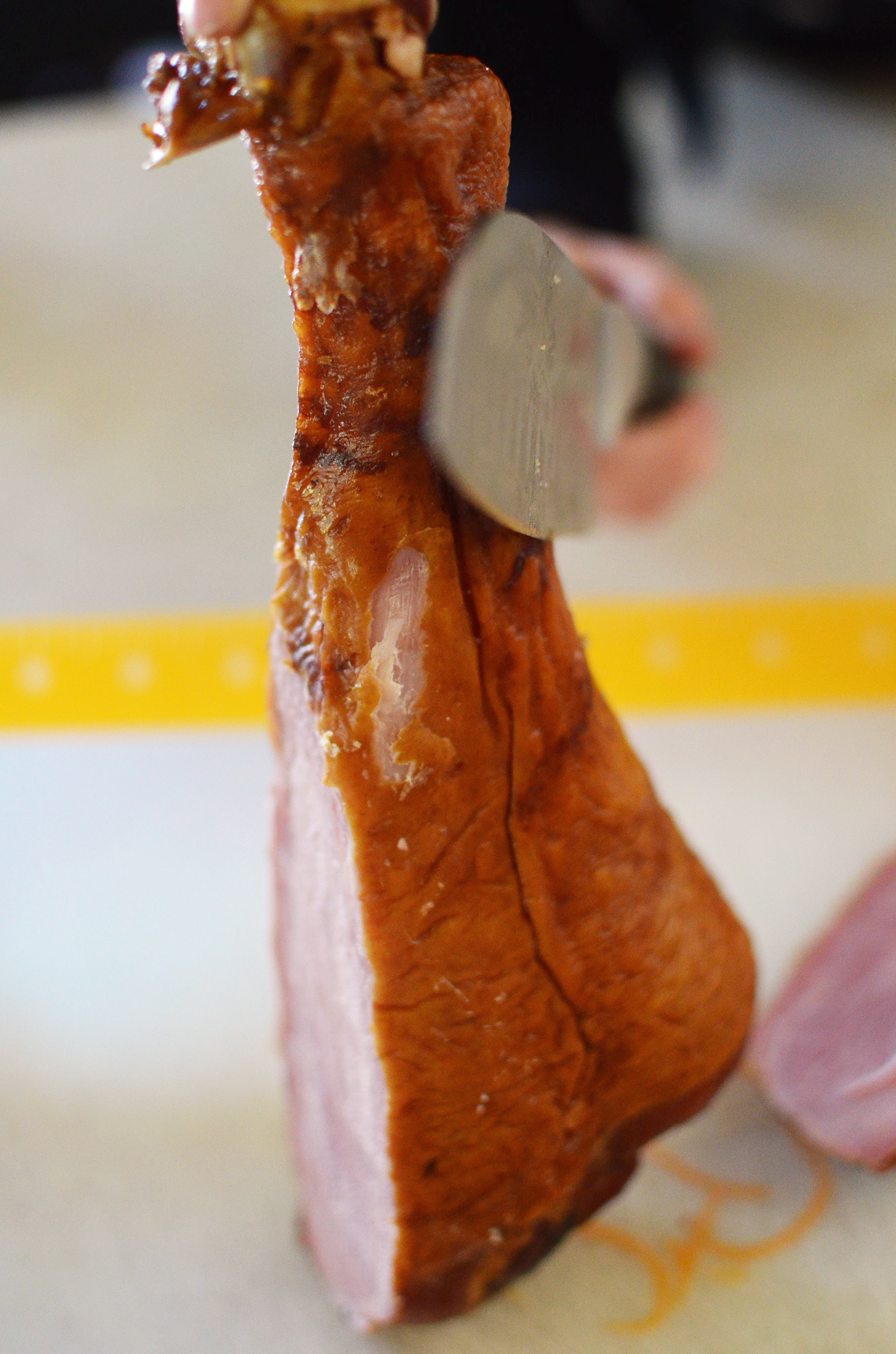 Let me show you just how easy these Baked Turkey and Black Bean Chimichangas are to make. First, set your oven to 400 degrees. Then trim the turkey meat from the bone.