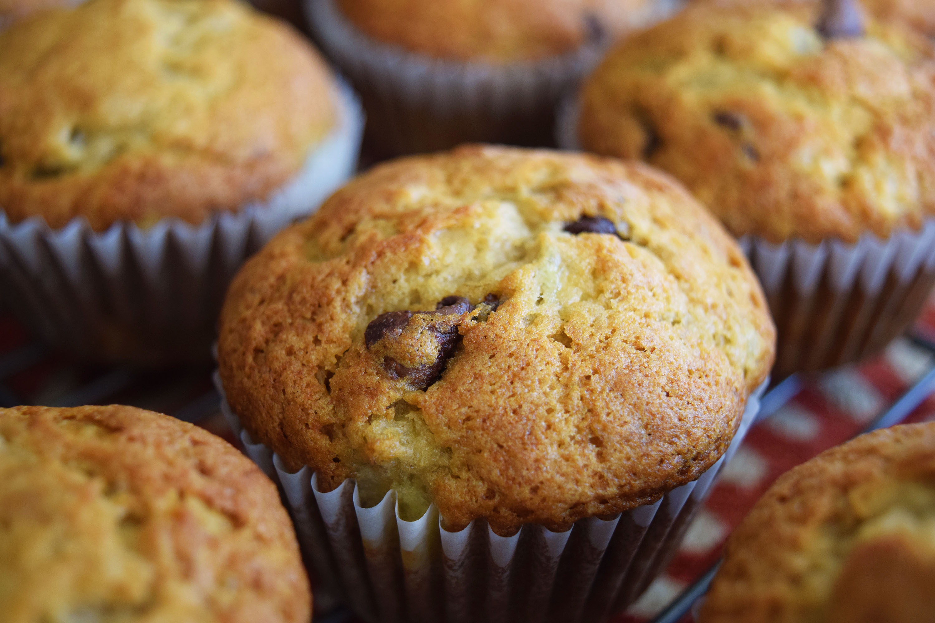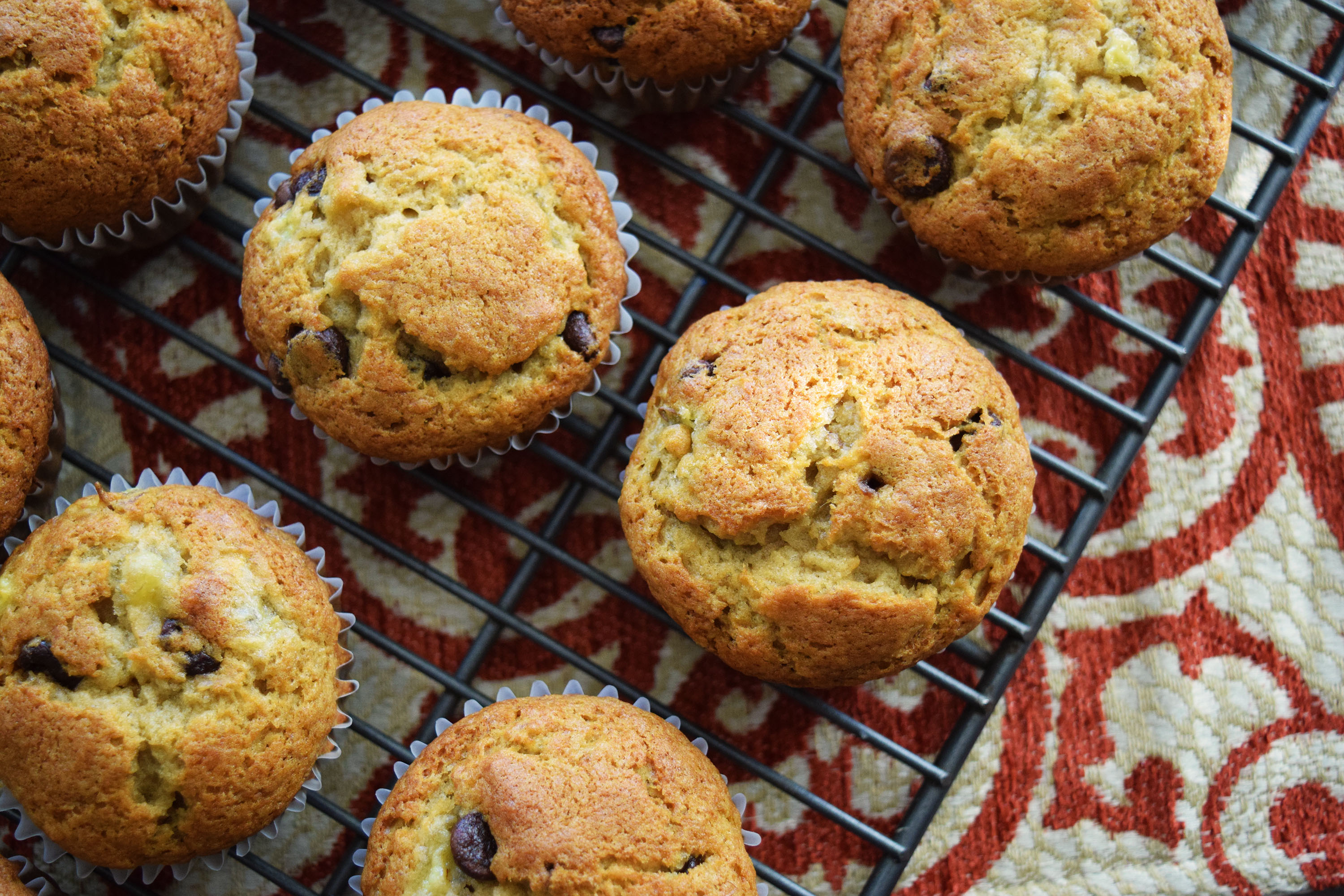 My daughter often requests these as her lunch dessert. In fact, the last time I made them, she walked in the house and immediately exclaimed, “Did you make those banana chocolate chip muffins?!” These spongy, fluffy muffins, browned to perfection and chock full of sweet, ripe bananas and rich chocolate chips are perfect for breakfast, dessert, neighbor treats, and midnight snacks. Just be warned: they will disappear before your very eyes, so make sure to sneak a few for yourself!