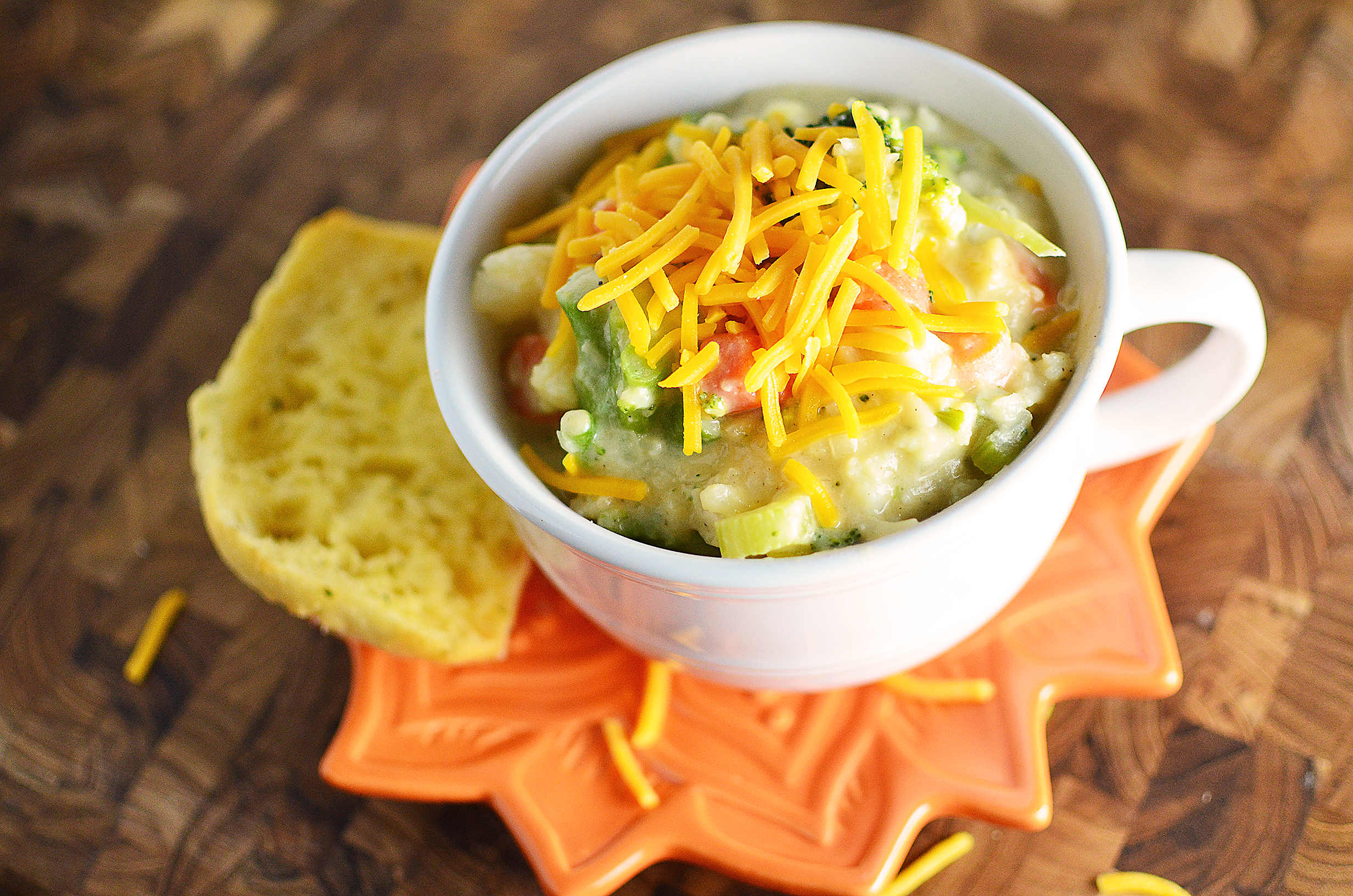 Don’t you love Broccoli Cheese soup? Years ago I had a serious jonesing for some, so my mom whipped up a pot. To this day, I remember how chunky and delicious it was. And I was like 13, so let’s just say that was more than a decade ago and leave it at that. The creamy soup was packed with broccoli, carrots, onion, and rich cheddar cheese. Unfortunately, my mom didn’t use a recipe and made it up as she went along. So I haven’t been able to make it for myself. But I’m stubborn and absolutely will not let a little fact like that set me back.