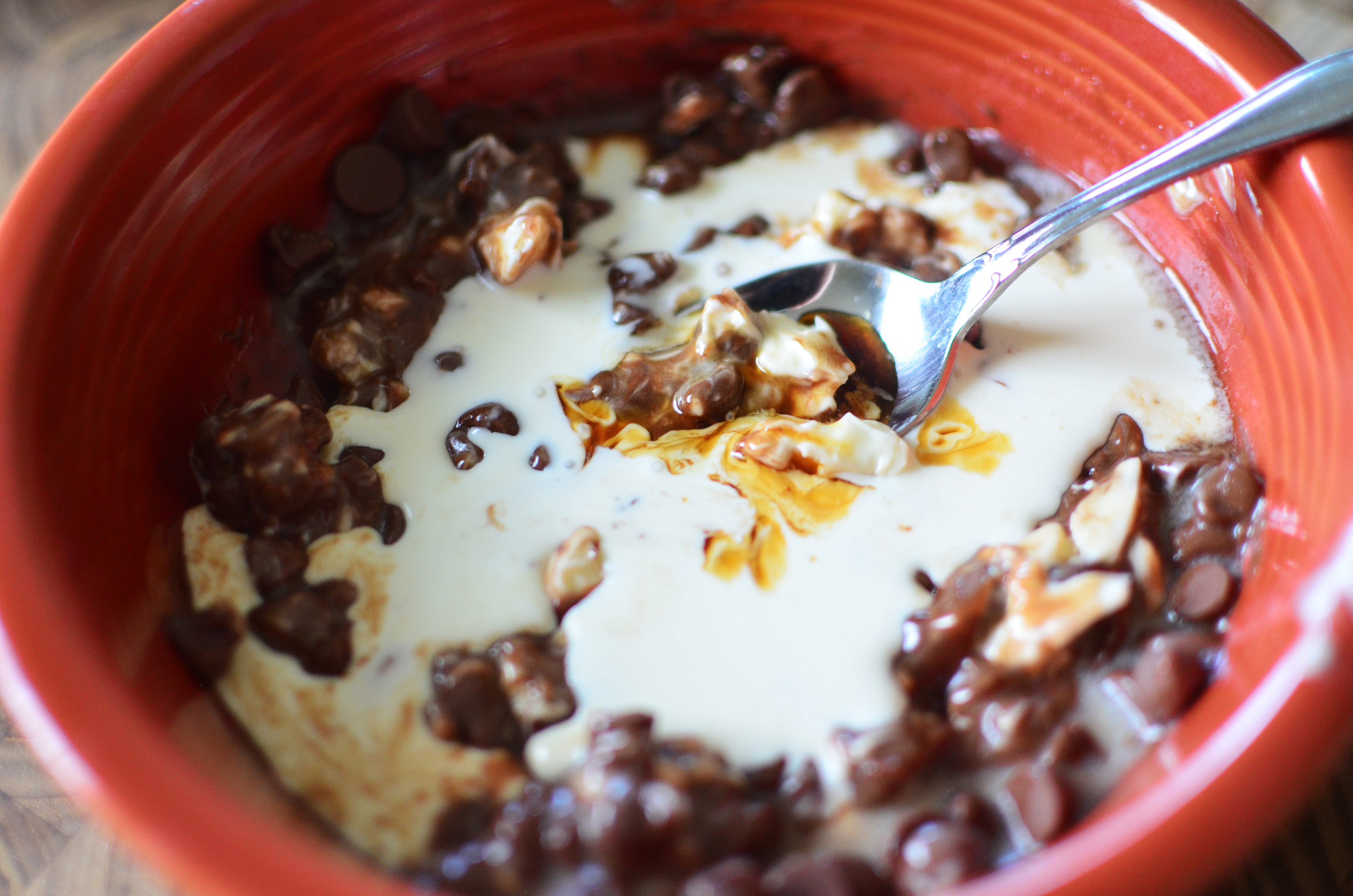 - 6 Tbsp chocolate chips (I used milk chocolate)