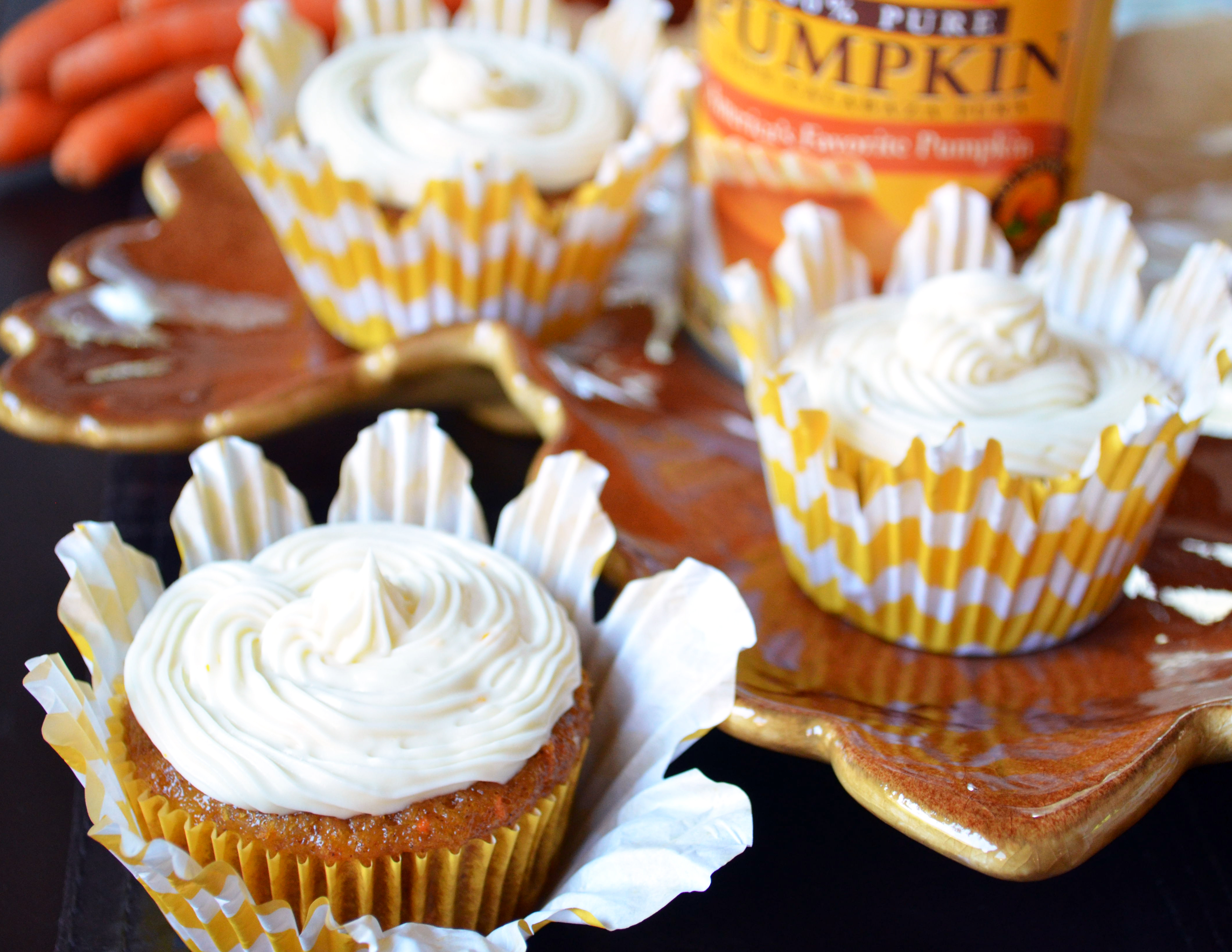 That’s why I’m so excited about these Pumpkin Carrot Cake Cupcakes. Just think about it: creamy pumpkin + spiced carrot cake + orange-zest cream cheese frosting = your tongue’s all, “party at my place!” I won’t admit to how many of these babies I’ve eaten, but suffice it to say that I’m going to wait a good couple weeks before setting foot in a Weight Watchers.