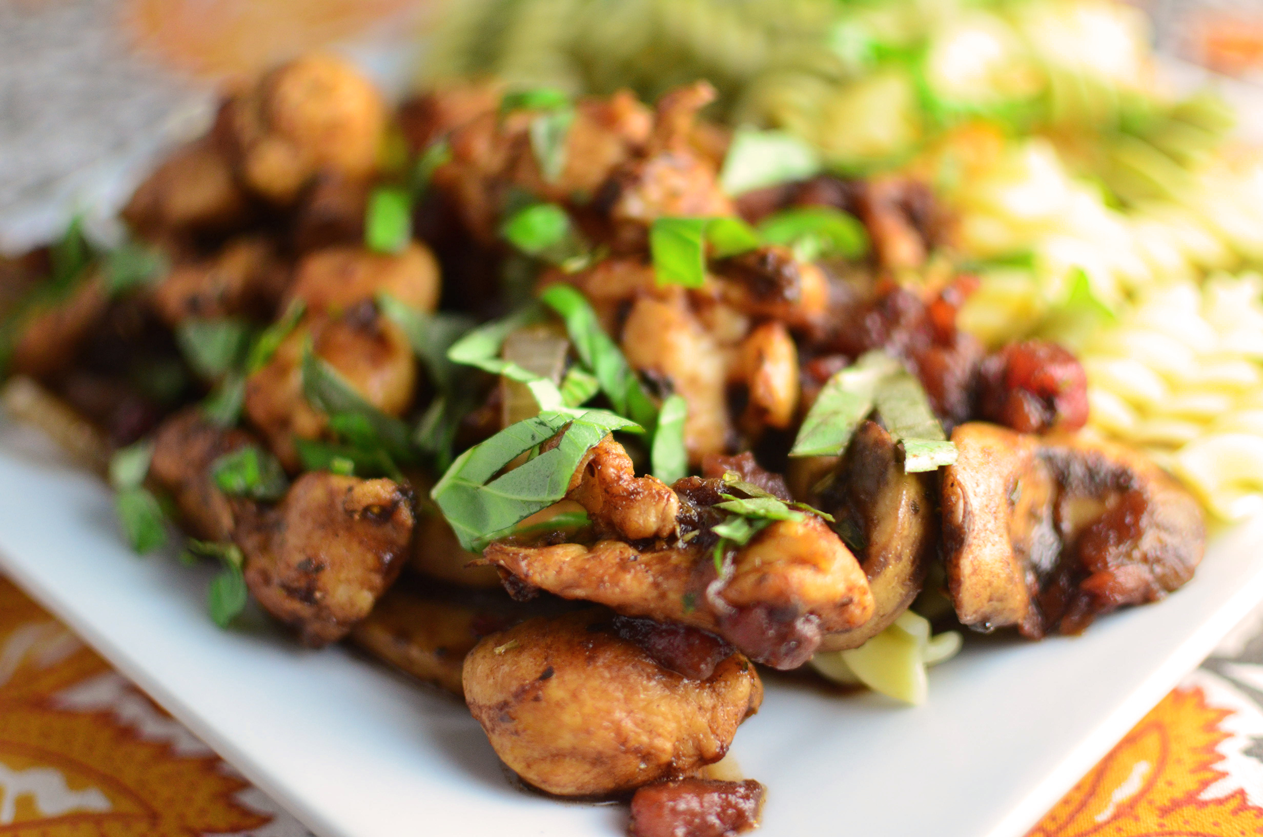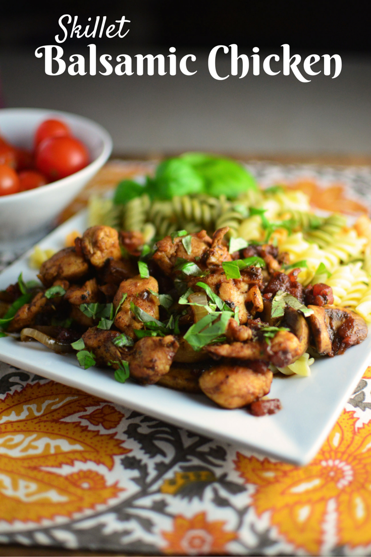 Sometimes you just need some CARBage. And by carbage, I mean pasta. A yummy, comforting bowl of it. Especially if we’re talking about this Skillet Balsamic Chicken. I gotta tell you that the night I planned on making this dish I DID NOT WANT TO COOK. I was beyond exhausted and could barely function. The thought of cooking after a long, hard day just made me wince. But I womaned up and did what any smart lady would do. I complained to the hubby. And he offered to make dinner. YES.
